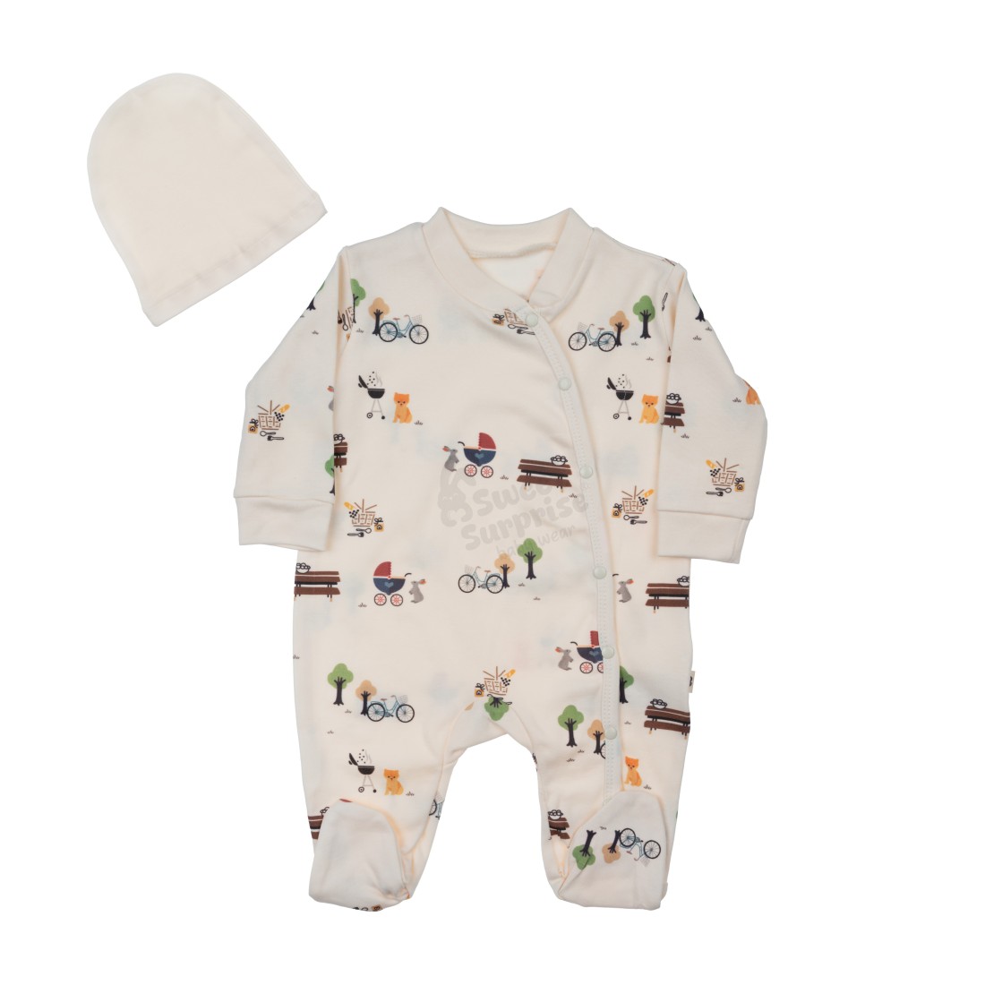 Ürün Adı: SWEET SURPRISE ORGANİK PİKNİK BAHÇESİ KREM PATİKLİ TULUM VE ŞAPKA YENİDOĞAN HASTANE ÇIKIŞI