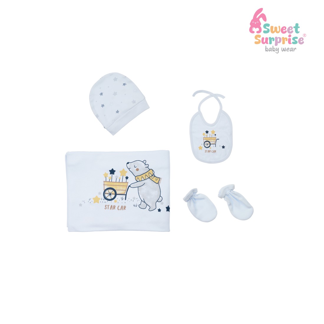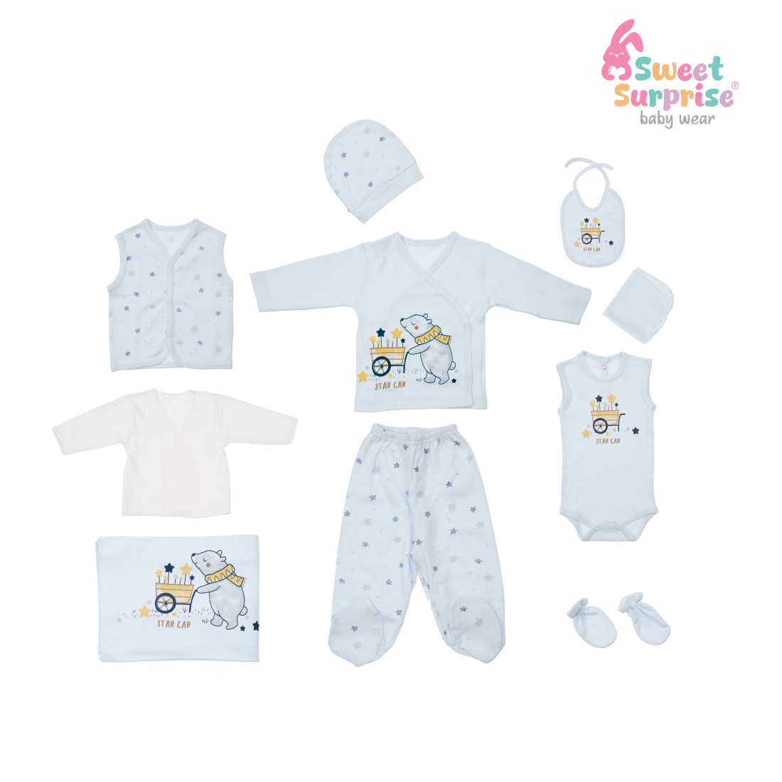 Ürün Adı: SWEET SURPRISE YILDIZLI AYICIK MAVİ %100 PAMUK 10'LU YENİDOĞAN HASTANE ÇIKIŞ SETİ