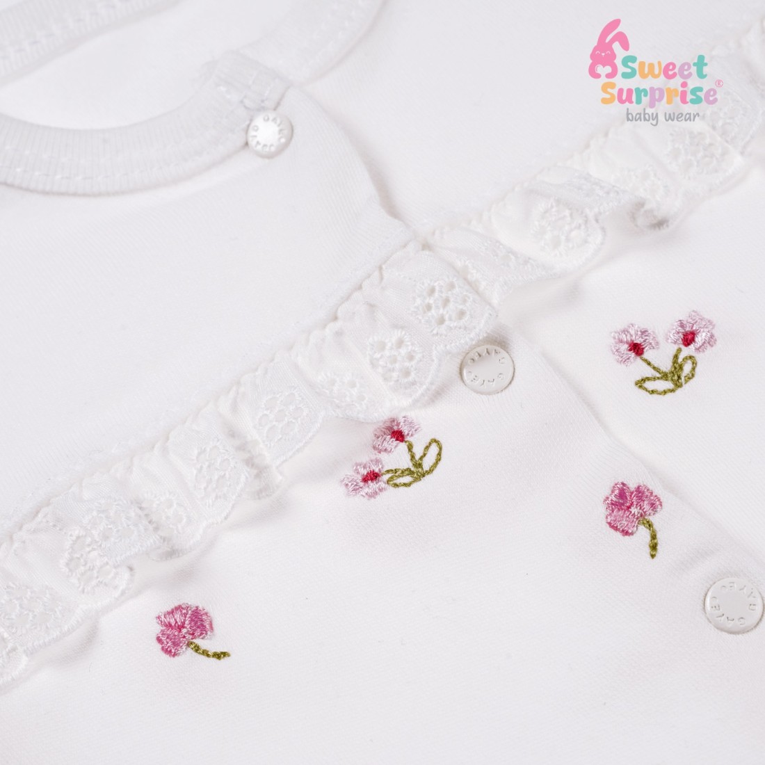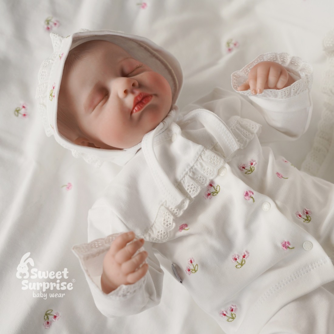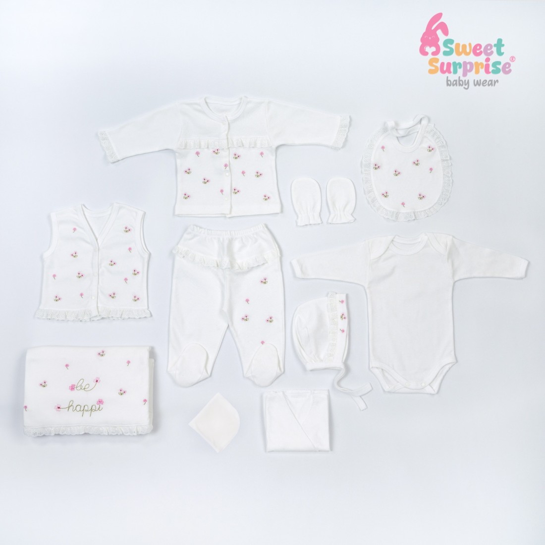 Ürün Adı: SWEET SURPRISE NAKIŞLI MUTLU ÇİÇEKLER EKRU %100 PAMUK 10'LU YENİDOĞAN HASTANE ÇIKIŞ SETİ