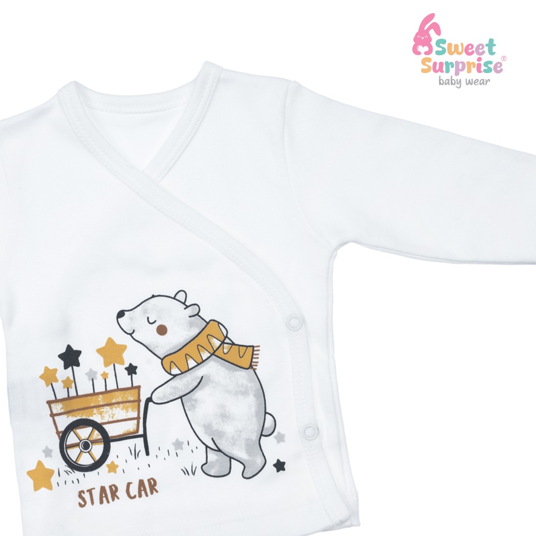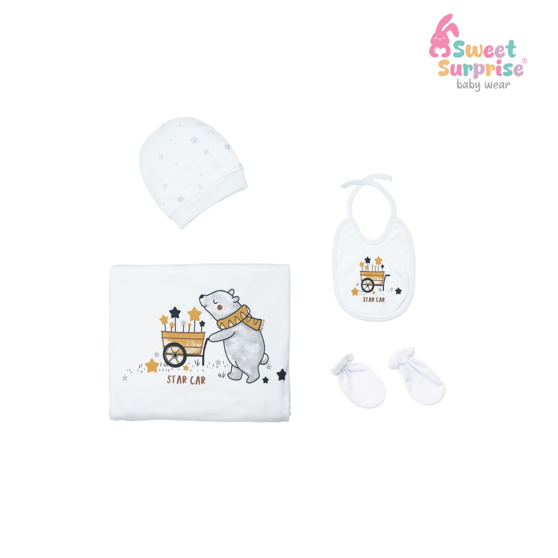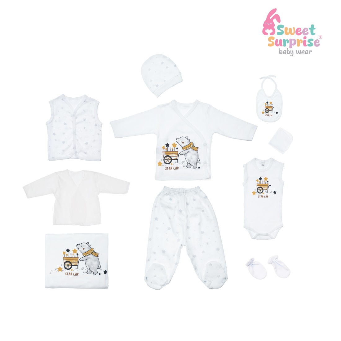 Ürün Adı: SWEET SURPRISE YILDIZLI AYICIK EKRU %100 PAMUK 10'LU YENİDOĞAN HASTANE ÇIKIŞ SETİ