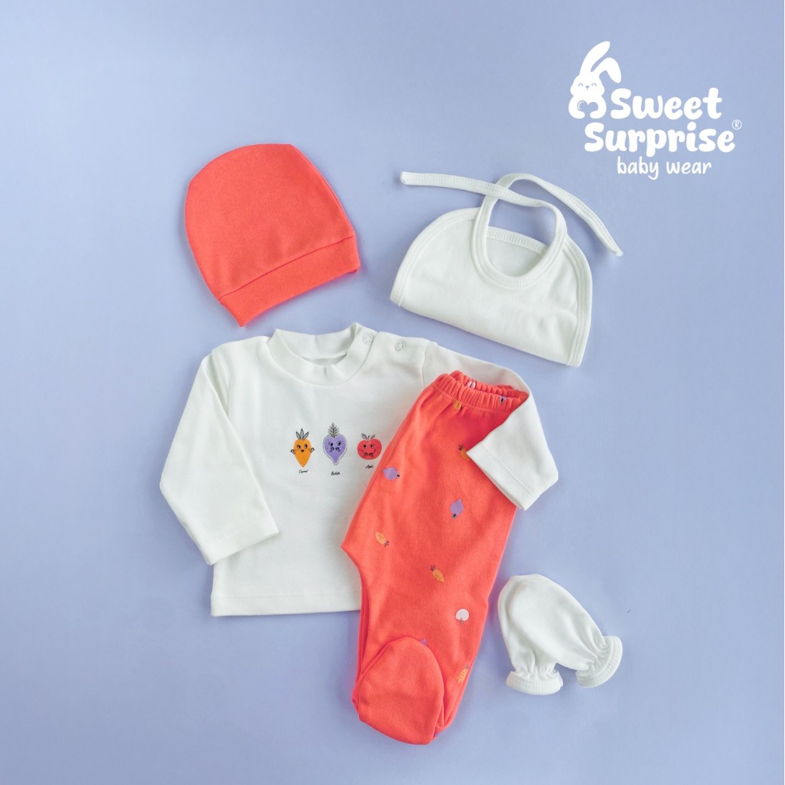 Ürün Adı: SWEET SURPRISE TATLI SEBZELER NARÇİÇEĞİ %100 PAMUK 5'Lİ YENİDOĞAN HASTANE ÇIKIŞ SETİ